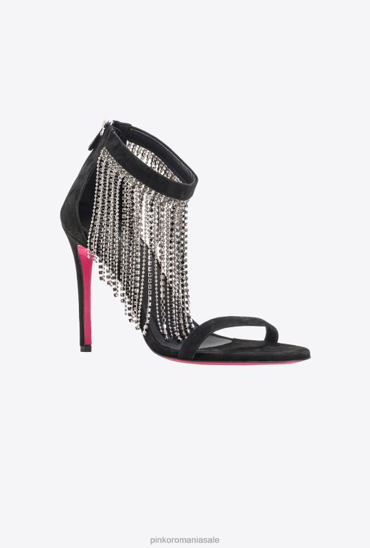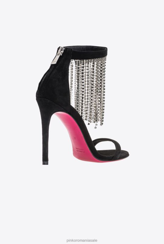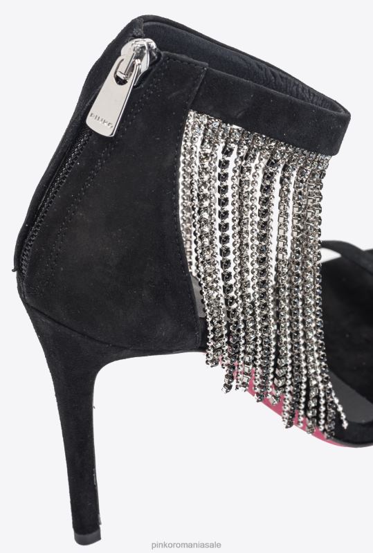 sandale | sandale cu franjuri din strass Pinko limuzina neagră B0D081095