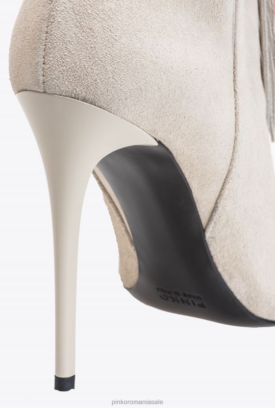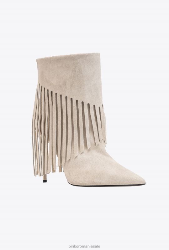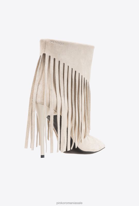 Botine din piele intoarsa moale, cu design tubular confortabil, franjuri decorative in stil cowboy si logo pinko mic in relief in partea de sus. varf conic si talpa din piele cu toc stiletto de 10 cm. branț căptușit și căptușeală din microfibră respirabilă.