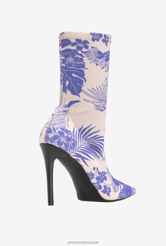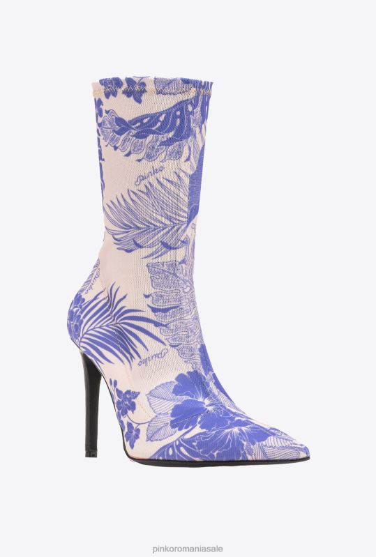 botine din țesătură strânsă din plasă elastică, cu imprimeu floral decorativ. varf conic si talpa din piele cu toc stiletto de 10 cm. branț căptușit.