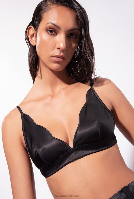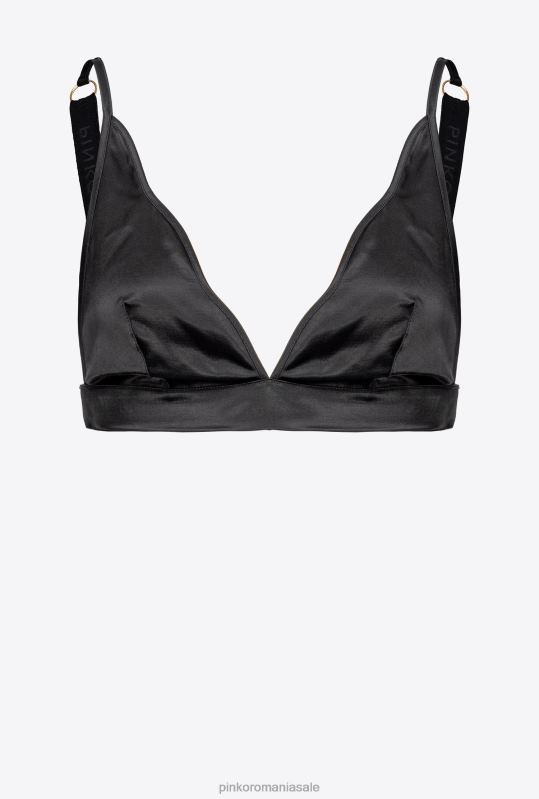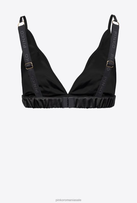 sutien triunghi din bumbac lucios si satin vascoza. decolteu în V cu margini ondulate, bretele subțiri reglabile cu logo pinko jacquard și bandă elastică la spate. prindere cu cârlig la spate.