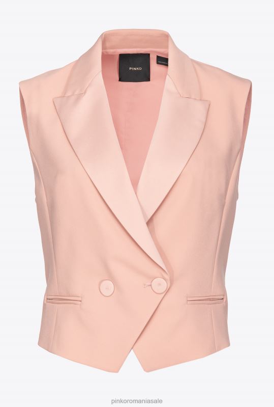 vestă scurtă din crepon și țesătură satinată envers lucioasă. guler cu rever, cusătură verticală și buzunare mici. inchidere cu nasture dublu in fata.