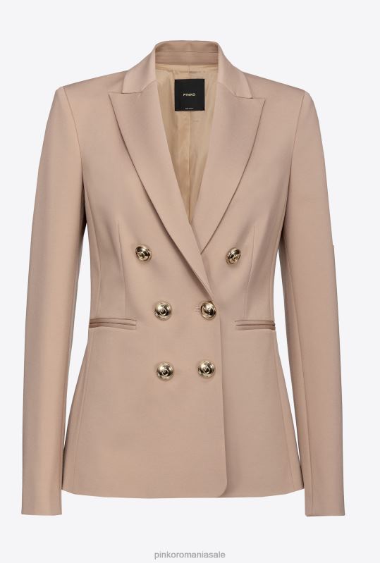 blazer din țesătură tehnică de viscoză elastică, integral milano-tricot. talie strânsă, guler cu rever, mâneci lungi și buzunare duble cu pădure pe laterale. căptușită. inchidere dublu cu nasturi bijuterii. - modelul are 178 cm inaltime si poarta marimea 40.